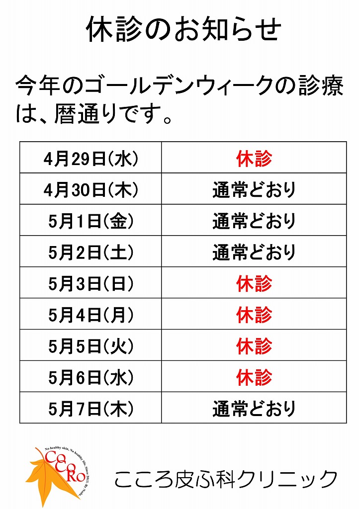 ようこそ、こころ皮ふ科クリニックのホームページへ。