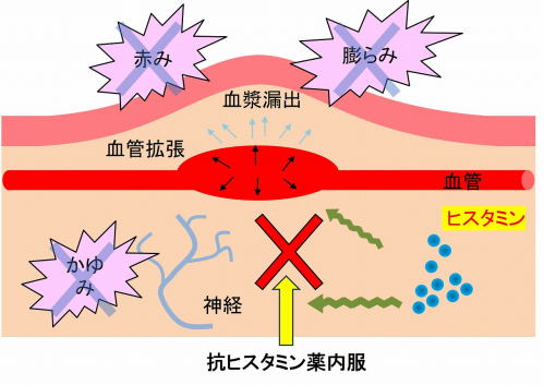 抗ヒスタミン作用のある薬剤(抗ヒスタミン薬)で治療を行います。