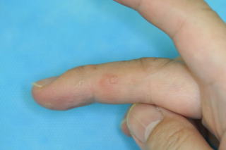 右中指の疣贅です。院長の指です。人生で初めて、イボができました。
